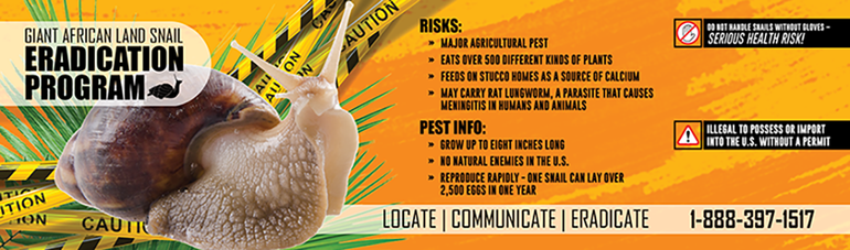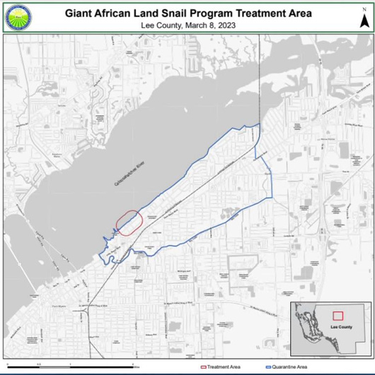 In December 2022, a detection of giant African land snail was confirmed in the Edgewood neighborhood. This regulatory incident required increased survey and voluntary treatment in the area. Continued survey resulted in an increase in the number of snails found, dead and alive, requiring FDACS to enact a quarantine in March 2023. FDACS will continue to use the same treatment methodology for this pest, which is a metaldehyde-based molluscicide (snail bait) and is approved for residential use. In the map you'll see that the Edgewood neighborhood circled in red, has been ground zero for search and destroy missions by the department of agriculture.